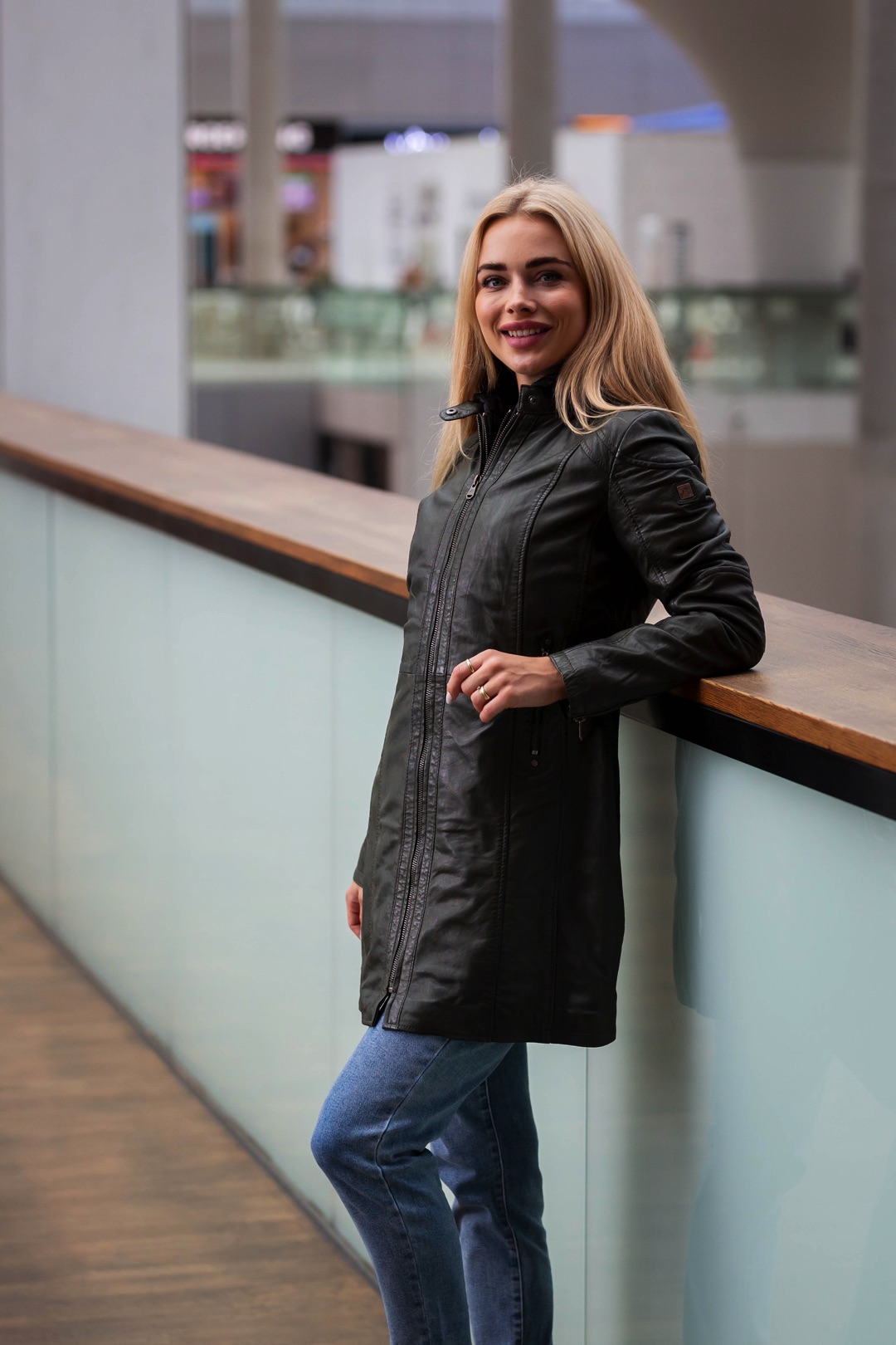 Dámský zelený kožený kabát s kapucí GWMarlis