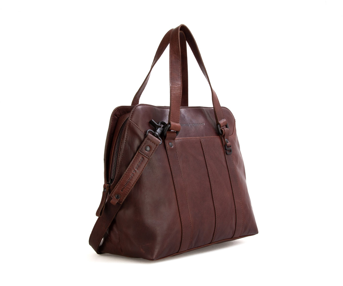 Kožená dámská kabelka SPIKES & SPARROW vyrobena ze 100% hovězí lícové kůže. Součástí této kabelky je odnímatelný, nastavitelný kožený popruh na rameno. Kabelka lze uzavřít na zip.  Vnitřní zapínatelná kapsa na zip je výborná pro bezpečné nošení dokladů. Kabelka má uvnitř polstrované uzavíratelné pouzdro, do kterého lze uložit notebook nebo tablet do velikosti 13"