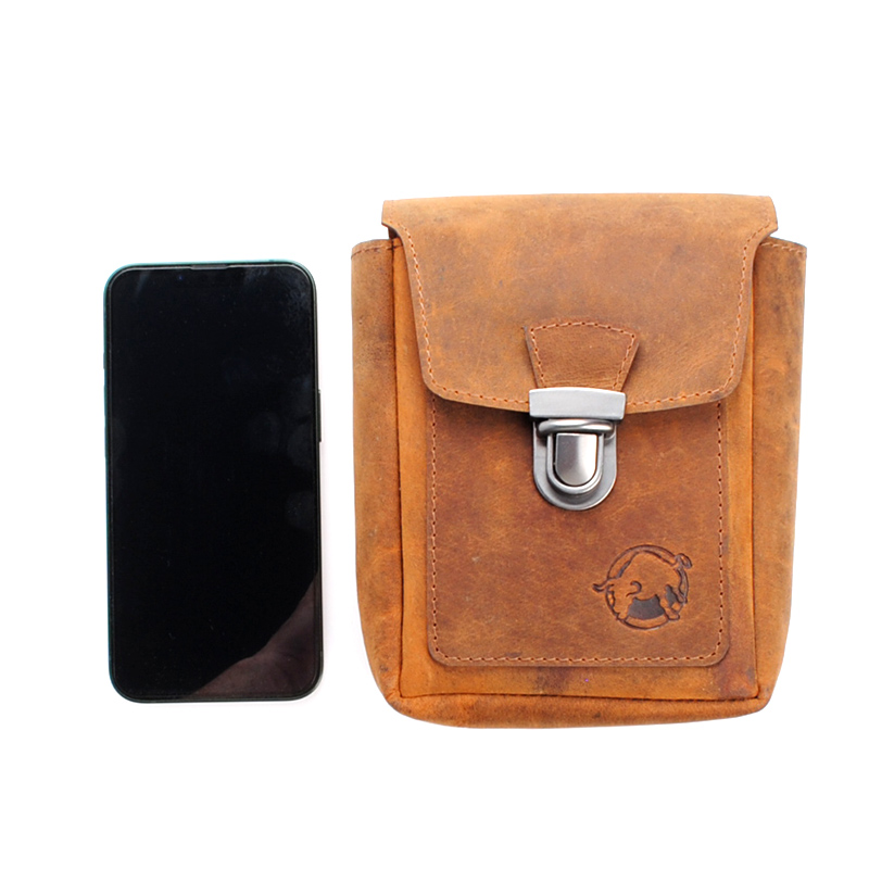Hnědá kožená kapsa z na opasek Divoký býk z měkké kůže