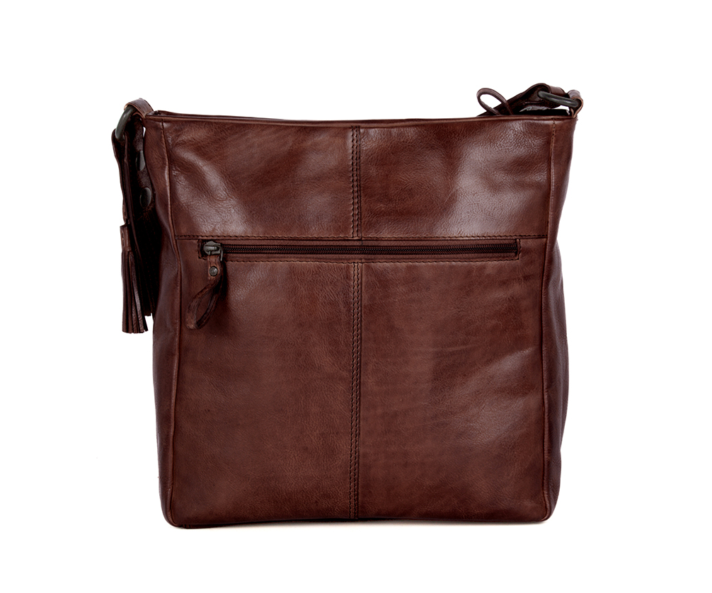 Taška přes rameno Saar je vyrobena z měkké apačské kůže a má pevný, přirozený vzhled. Přední kapsa má svislý šev a decentní cvočky. Taška se zapíná na zip a má prostorný vnitřní prostor. Nastavitelný ramenní popruh je praktický a stylový a je dodávána také s odnímatelným dlouhým ramenním popruhem. Na boku visí hravé kožené střapce pro ženský nádech. Ideální pro každodenní nošení!