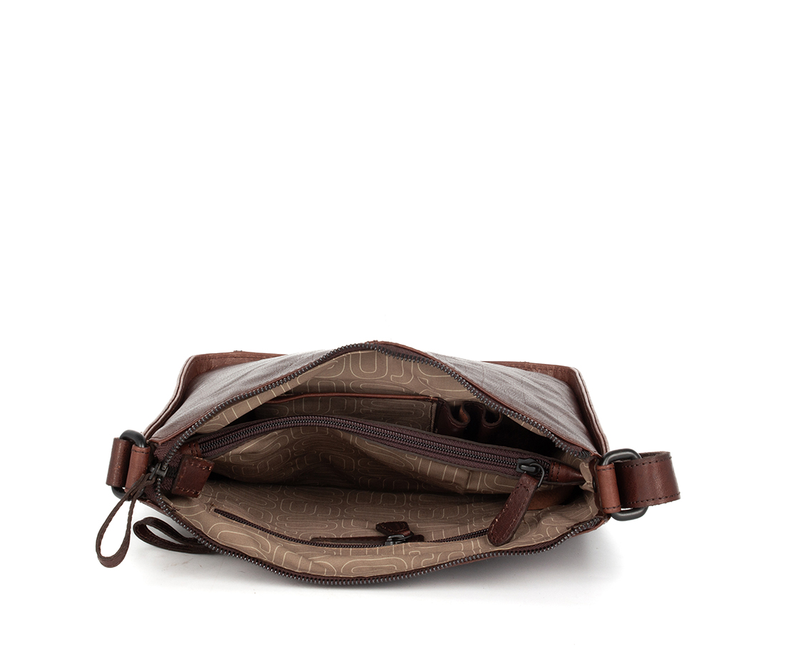 Hnědá kožená kabelka přes rameno značky SPIKES & SPARROW vyrobená ze 100% hovězí lícové kůže. Taška má kožený nastavitelný popruh a je uzaviratelná na zip. Vnitřní uzaviratelná kapsa je idealní pro uložení dokladů.