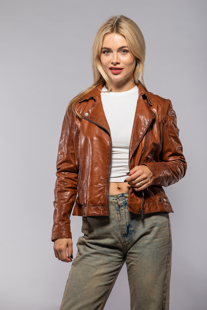 Dámský cognac kožený křivák