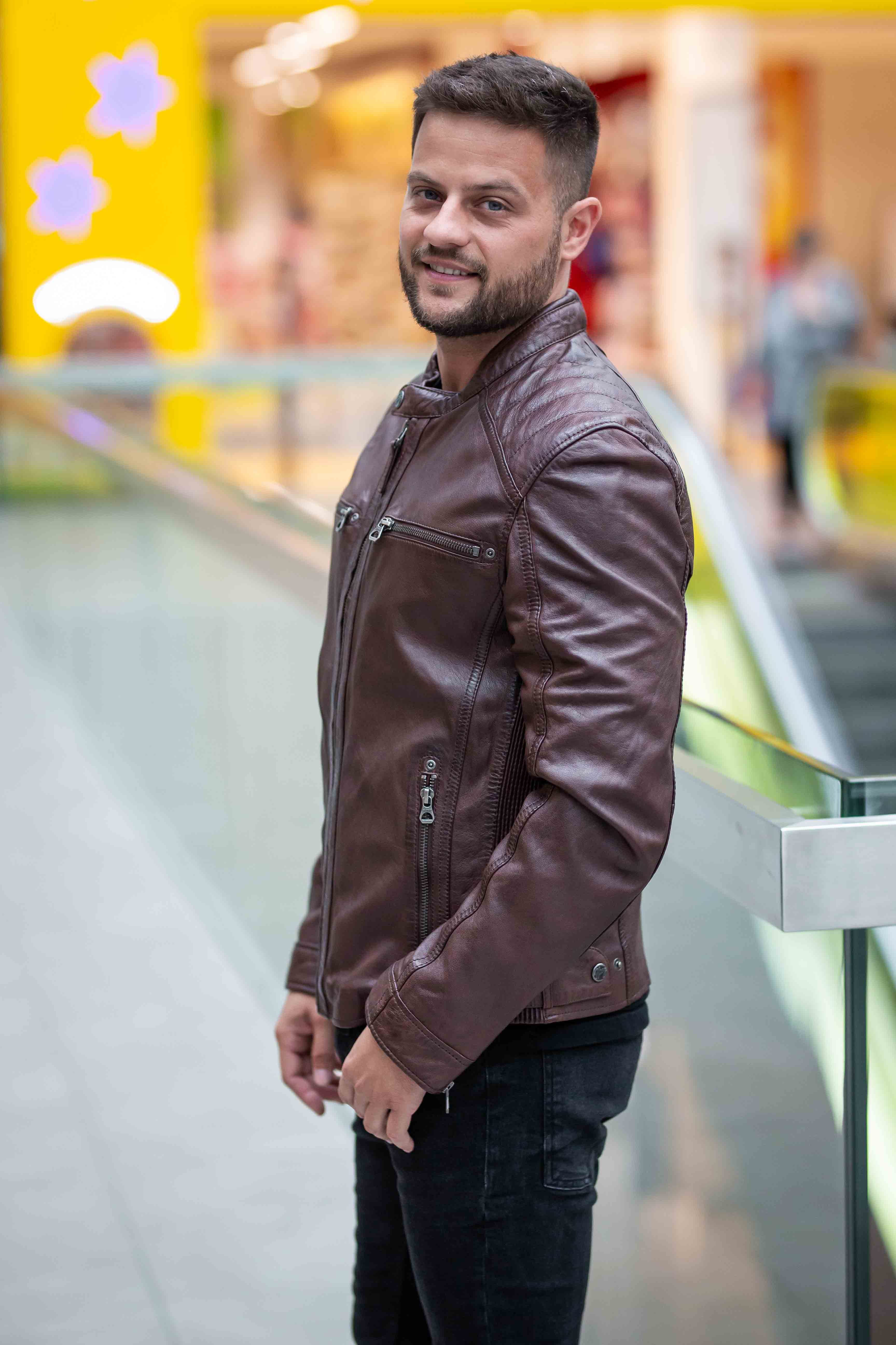 Pánská kožená bunda kaštanově hnědé barvy vyrobená ze 100% jehnětiny. Střih Comfort velmi příjemně sedí. Vybíráte koženou bundu? U býka najdete kožené bundy předních evropských výrobců Gipsy a Derrcraft. Obrovský výběr modelů i barev, bundy máme i v nadměrných velikostech. Navštivte nás v některé z našich prodejen, které máme v Praze, Plzni a v Ostravě. Všechny kožené bundy máme skladem!