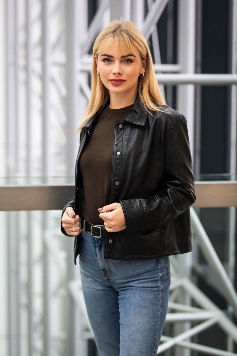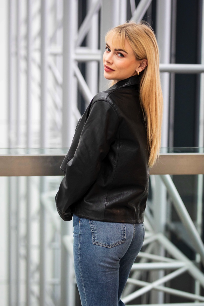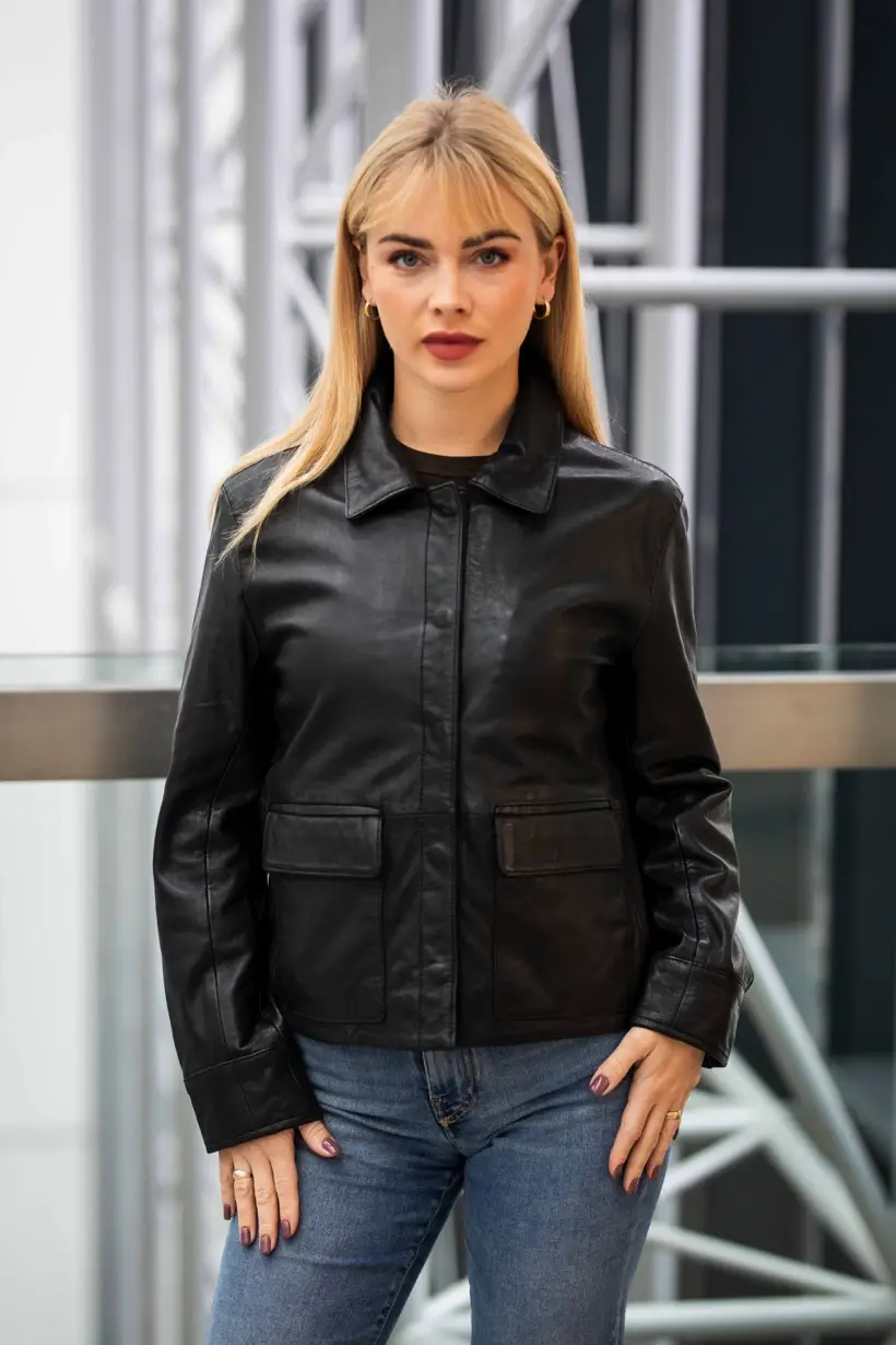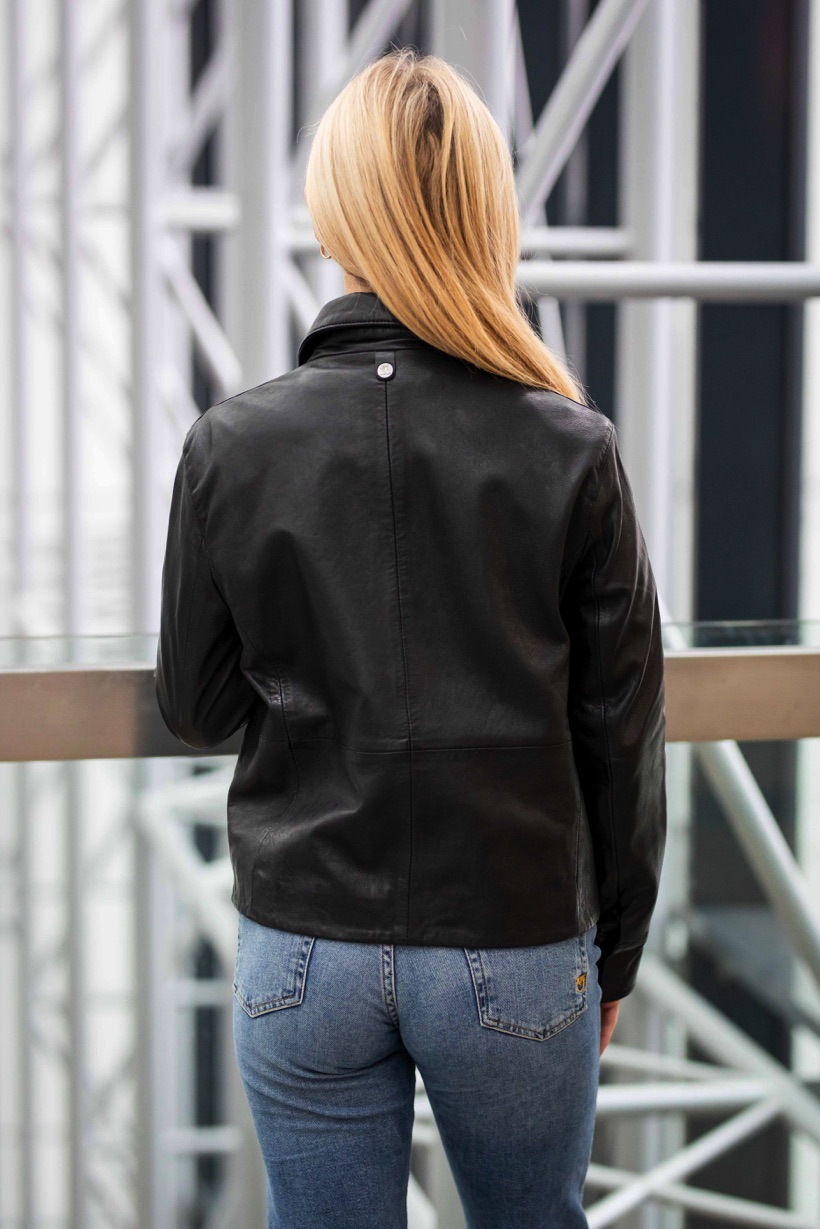 Dámská černá kožená bunda s límcem je vyrobena ze 100% jehnětiny. Jednoduchá bundička má kryté zapínaní i kapsy. Střih Regular krásně sedne každé postavě. Vybíráte koženou bundu? U býka najdete kožené bundy předních evropských výrobců Gipsy a Derrcraft. Obrovský výběr modelů i barev, bundy máme i v nadměrných velikostech. Navštivte nás v některé z našich prodejen, které máme v Praze, Plzni a v Ostravě. Všechny kožené bundy máme skladem!