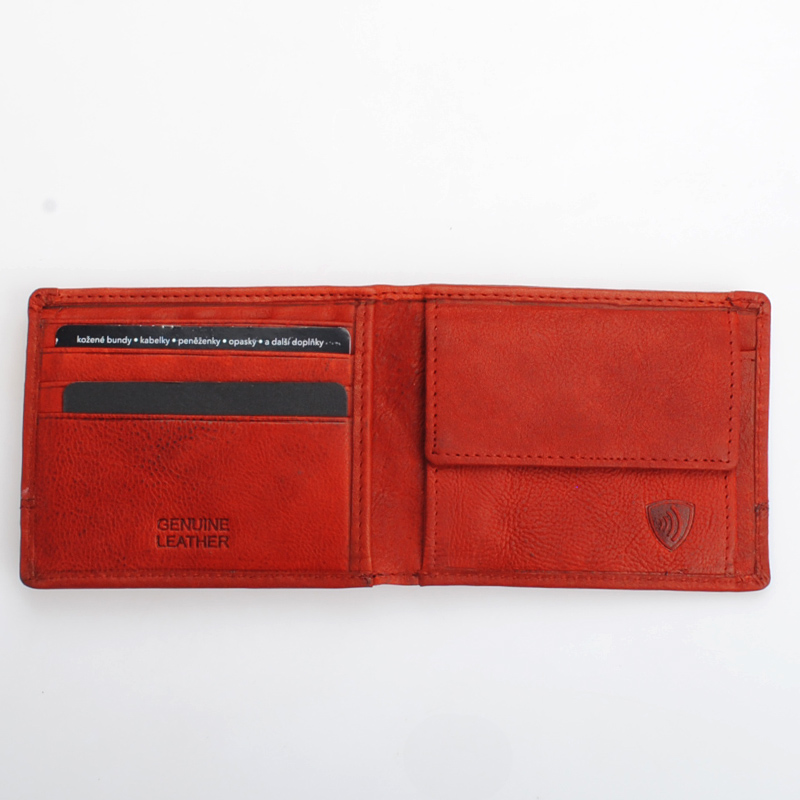 Tato kompaktní kožená peněženka je vyrobena ze 100%hovězí lícové kůže. Přes zdánlivě malé rozměry lze vložit 8 platebních karet a standardní české bankovky. RFID ochrana, kvalitní lícová kůže, 1 přihrádky na bankovky, kapsička na mince, 8 přihrádek na karty, kvalitní podšívka, nitě, druky,