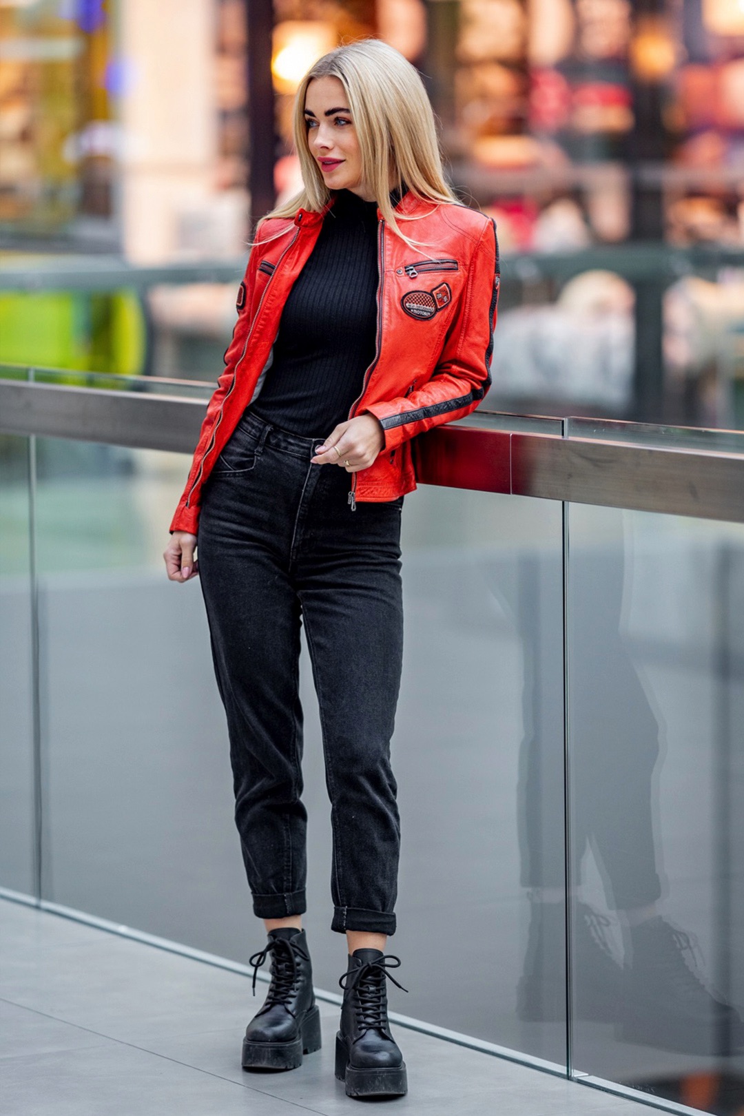 Dotaz k produktu - Oranžová motorkářská kožená bunda GWZiya