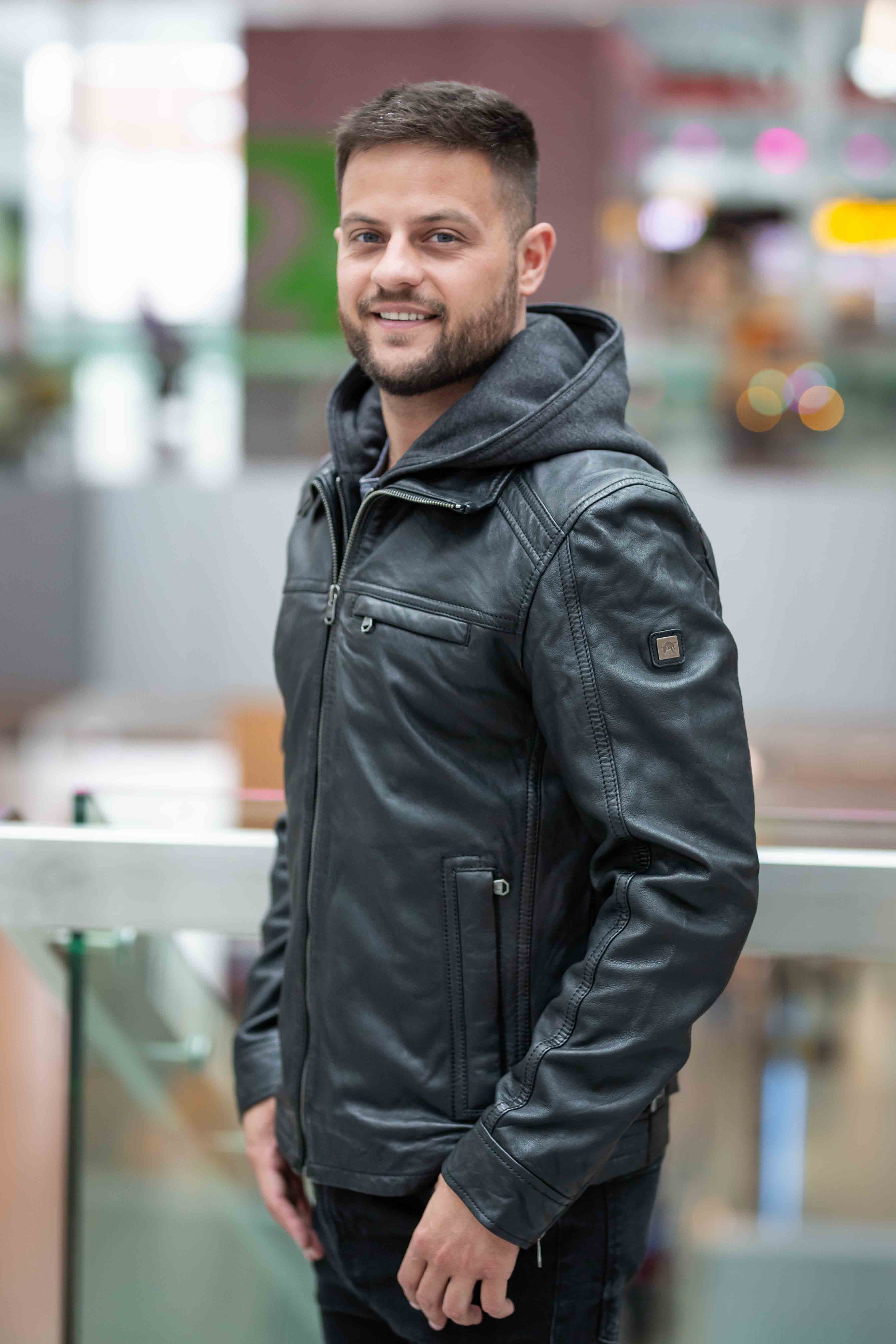 Pánská kožená bunda značky Divoký býk v černé barvě s odnímatelnou kapucí. Tato bunda je vyrobena ze 100% jehnětiny. Parádní kus ve velikostech 50 až 66.
