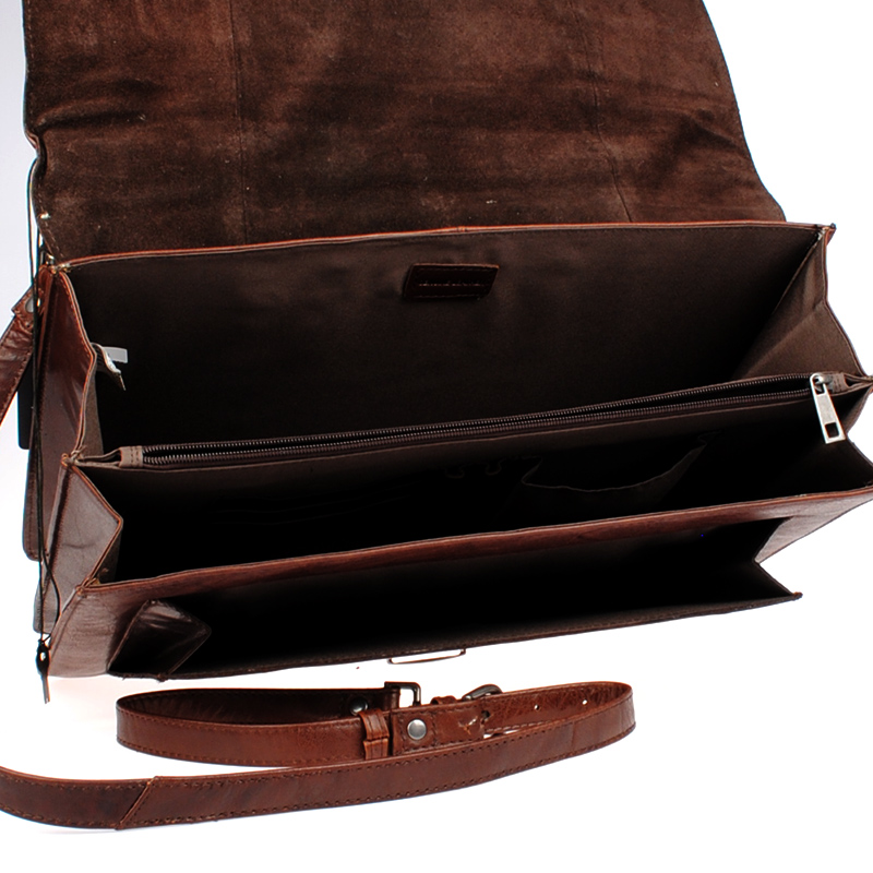 Kvalitní kožená aktovka naší výroby, která je zhotovená 100% hovězí kůže. Je uzavíratelná na zámek. Uvnitř najdete 4 přihrádky na dokumenty, kdy jedna je uzavíratelná na zip. Váha 1,5kg.