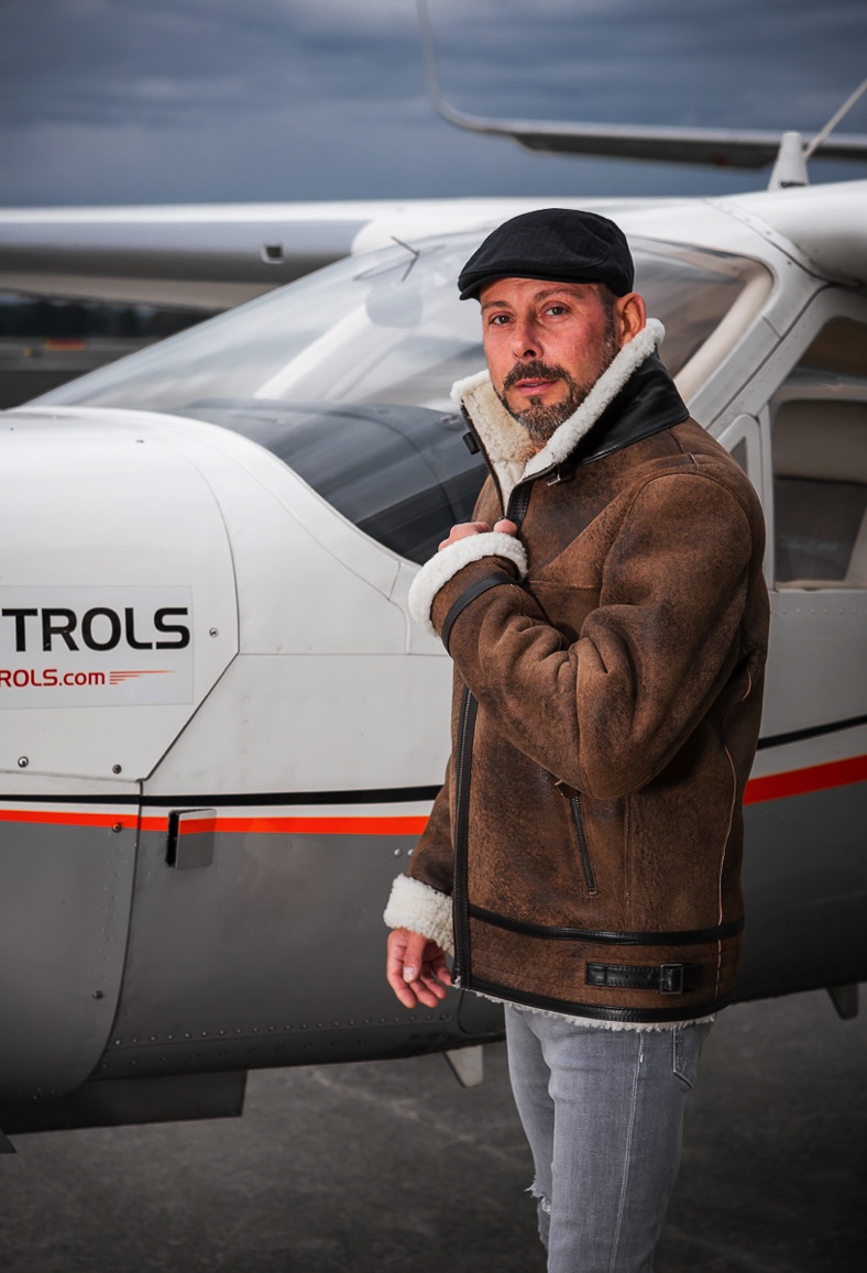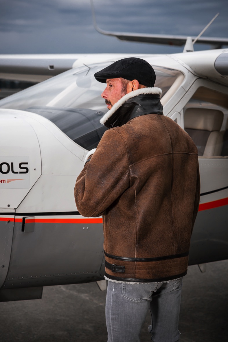 Model má na sobě oblečenou koženou bundu ve velikosti M a jeho míry jsou 176 cm a 76kg
