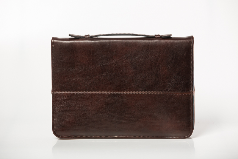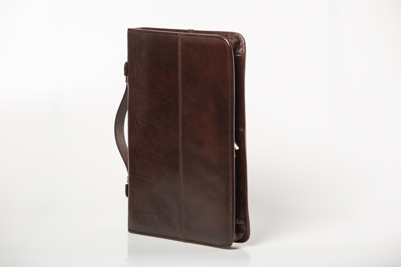 Praktická kožená spisovka na zip po celém obvodu a uchem.