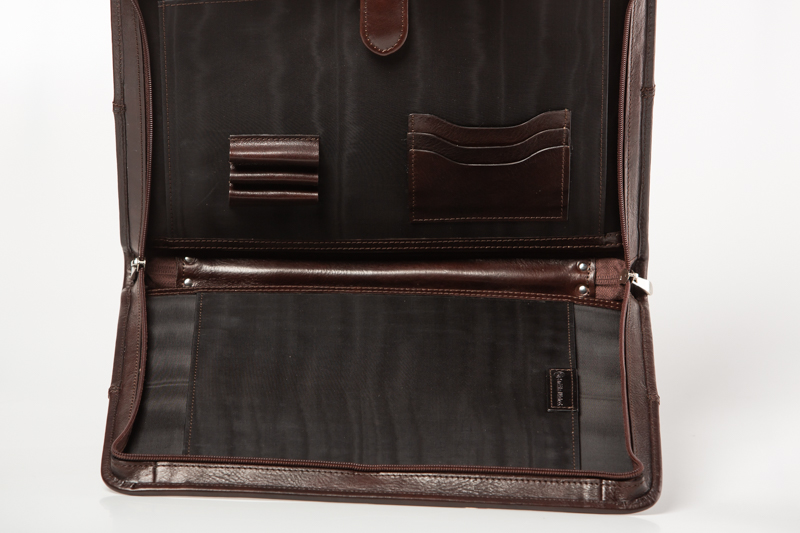 Kožená spisovka známé české značky Sněžka Náchod se zapínáním na zip z každé strany, po celém obvodu a praktickým uchem. Uvnitř nechybí organizér na tužky a vizitky i kapsa na razítko. Spisovka má samostatnou komoru na dokumenty, kterou lze uzavřít patkou na patent a komoru na spisy.