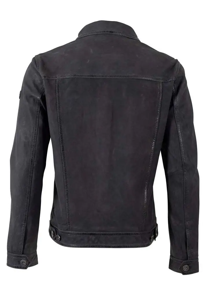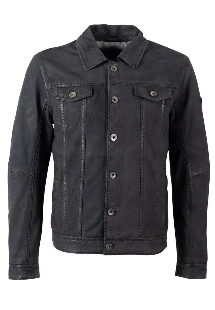 Pánská kožená bunda je vyrobena ze 100% jehnětiny, vzhled broušené kůže ve stylu riflové bundy - džisky. Střih pro běžné postavy (Regular-Fit) a dobře padne.