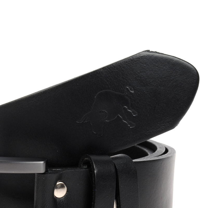 Pánský černý kožený opasek 40mm s tmavou niklovou sponou