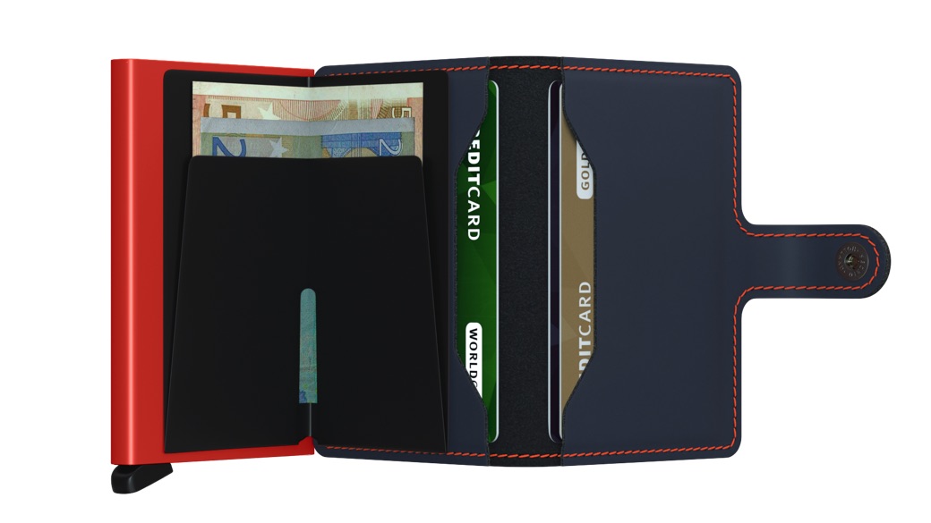Tato originální peněženka Secrid Miniwallet Matte NIGHTBLUE & ORANGE, která zaujme svou kompaktní velikostí se skládá z pouzdra na karty Cardprotector do které lze vložit 6 karet a přebalu z kvalitní kůže, do které lze vložit bankovky, vizitky a další 4 karty. Celá peněženka je pak chráněna RFID ochranou, která zabraňuje neoprávněnému přístupu k bezkontaktním kartám. Chcete minipeněženku? Chcete peněženku na karty? U nás si vyberete. Máme skladem širokou nabídku od předních evropských výrobců-Secrid, Exentri, Tony Perotti i levnější napodobeniny. Všechny možné barevné kombinace, modely s kapsičkou na drobné i bez. Chcete si peněženku před nákupem prohlédnout a osahat? Navštivte nás, máme prodejny v Praze, Plzni, Ostravě.