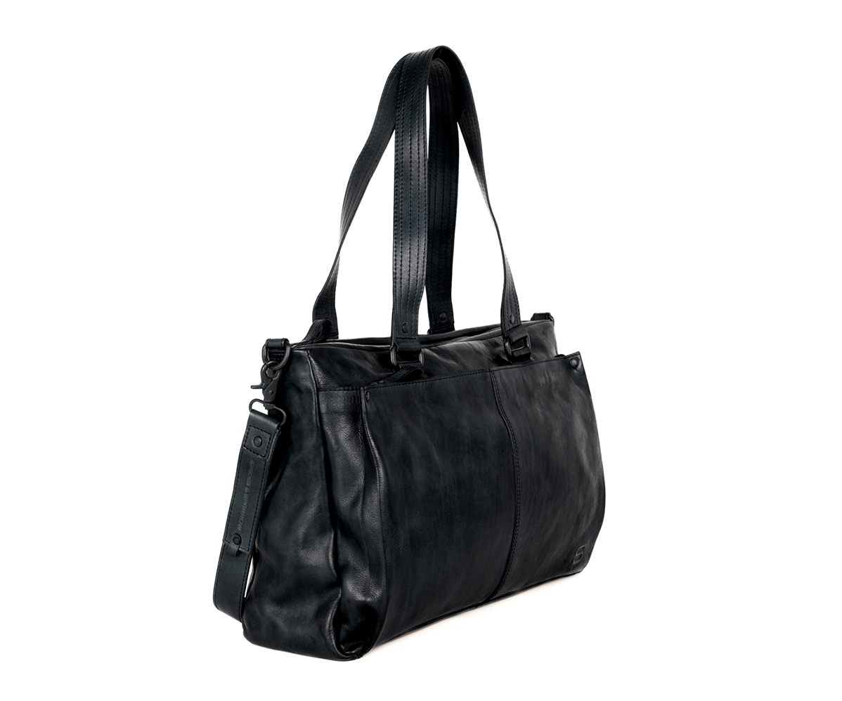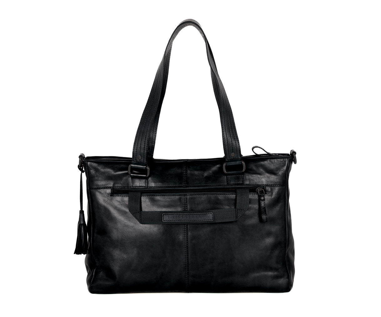 Praktická černá kožená taška na laptop SPIKES & SPARROW