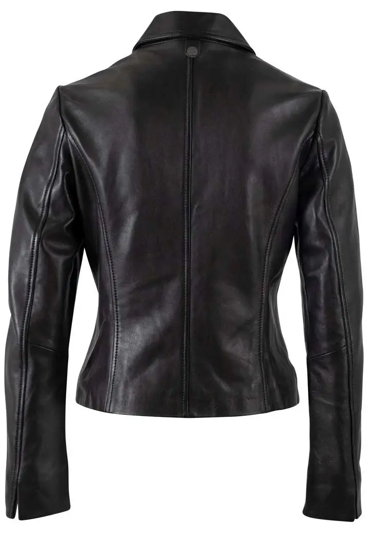 Dámská černá kožená bunda s límcem je vyrobena ze 100% jehnětiny. Jednoduchá, nadčasová, kožená bundička. Střih Regular-Fit pro běžné postavy, kvalitní lícová kůže včetně zpracování. Tato je bunda je náš originální produkt.