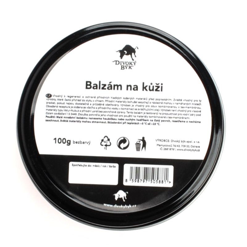 Balzám na kůži je speciální regenerační a impregnační vosková pasta s obsahem včelího vosku na kožené materiály. Změkčuje, zvláčňuje a impregnuje . Balzám proniká hluboce mezi usňová vlákna a po nanesení vytváří flexibilní a vodoodpudivý film. Je vhodný pro koženou obuv, která často přichází do styku s vlhkem a vodou. Nesnižuje propustnost pro vodní páry a je proto vhodný pro membrány typu Gore-tex, Sympatex apod. Kůži díky použité kombinaci přírodních vosků a olejů dobře vyživuje, změkčuje a zvláčňuje. Zároveň nezanechává mastný film. Speciální látky obsažené v přípravku pečují o obuv a kožené doplňky po dobu jejich uskladnění tak, aby vypadaly jako nové. Balzám dodá materiálu voskovou ochranu proti povětrnostním vlivům. Účinnost se zvyšuje opakovaným použitím.