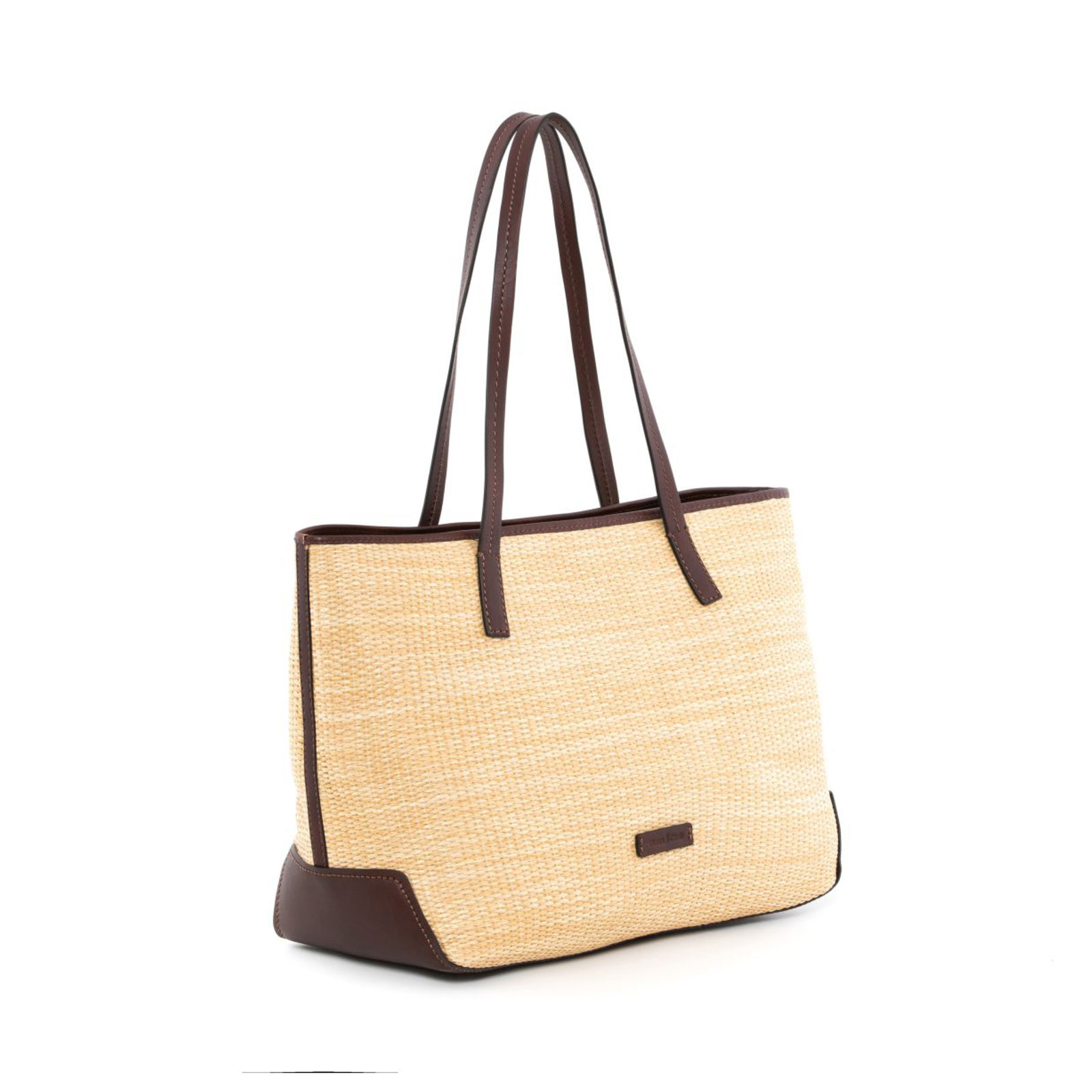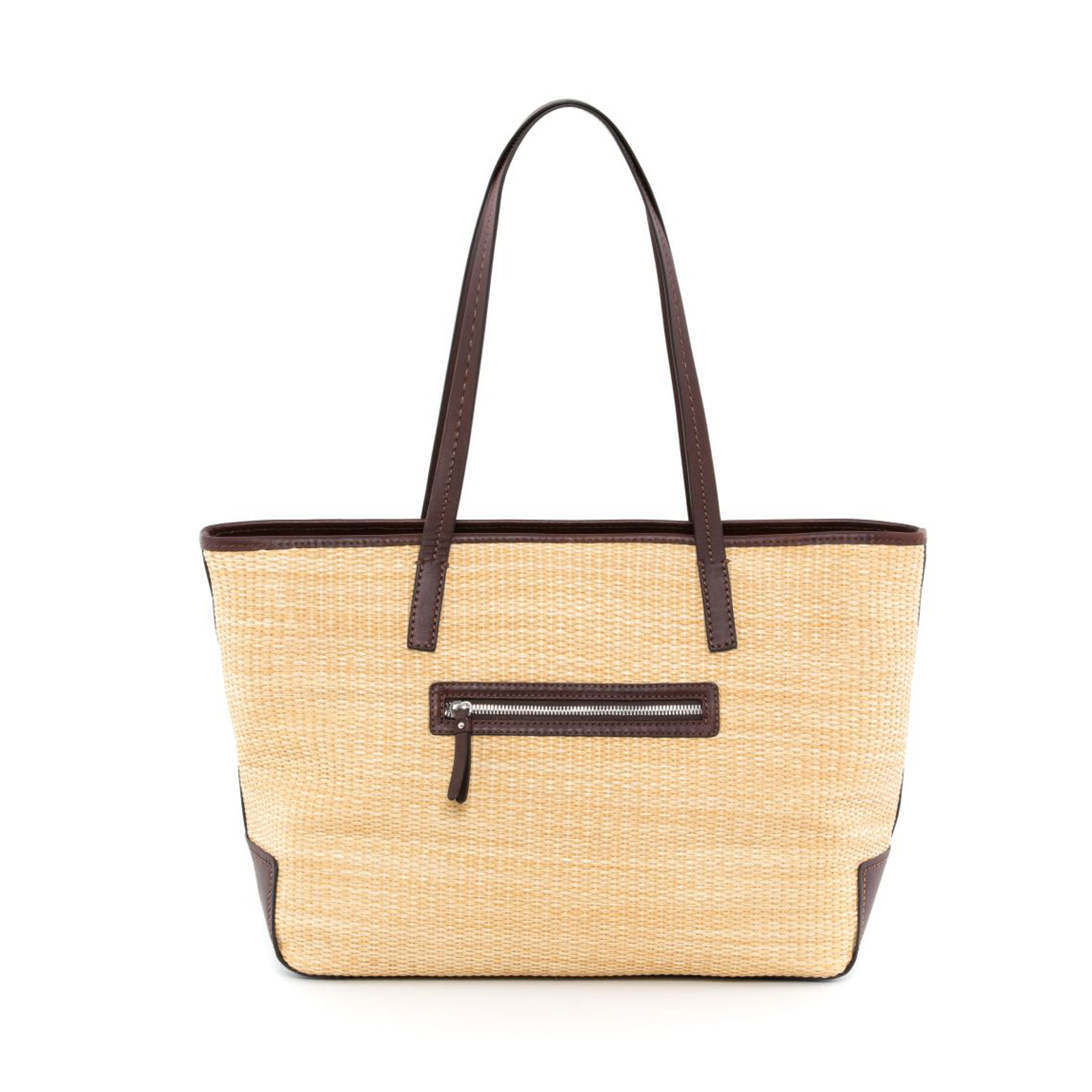 Slaměná dámská taška Gianni Conti je doplněna nádhernými ozdobami z hovězí kůže. Vnitřní zapínatelná kapsa na zip je výborná pro bezpečné nošení dokladů.