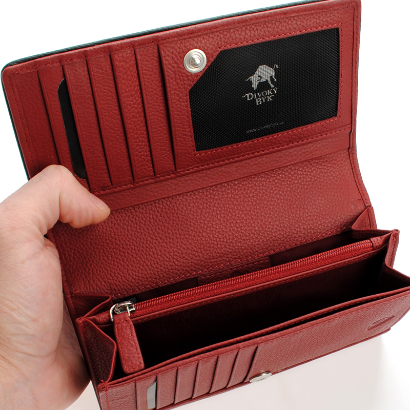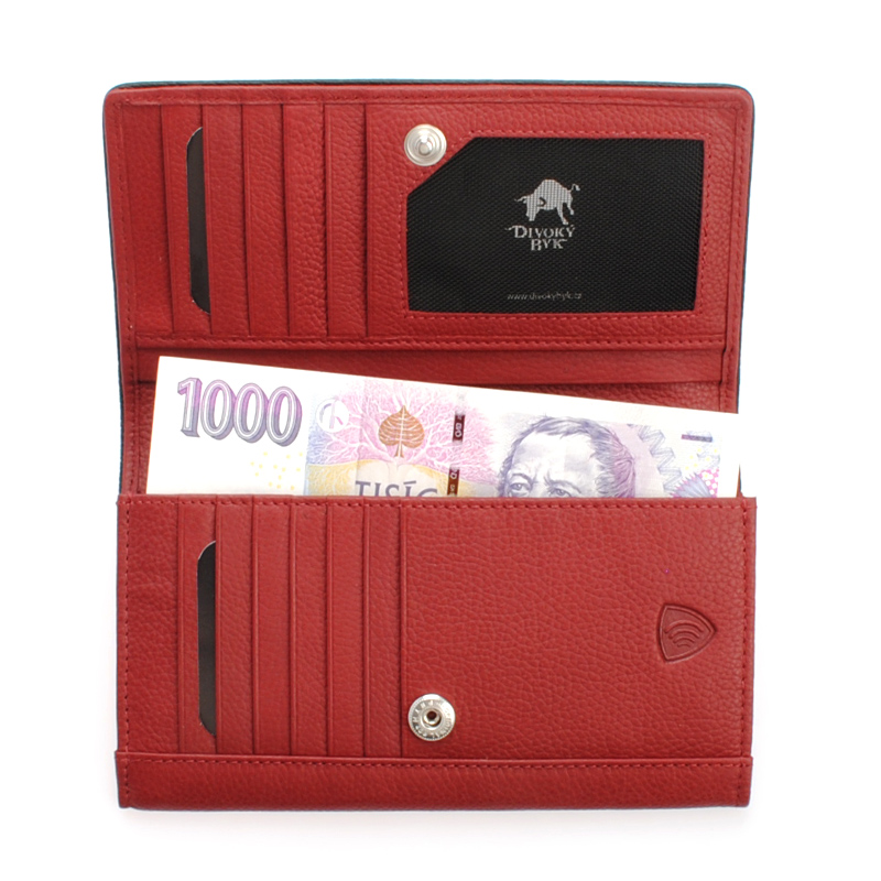 Tato kvalitní dámská kožená peněženka je vyrobena ze 100%hovězí lícové kůže. RFID ochrana, kvalitní lícová kůže, 3 přihrádky na bankovky, kapsička na mince, 13 přihrádek na karty, kvalitní podšívka, nitě, druky, V dárkové krabičce.