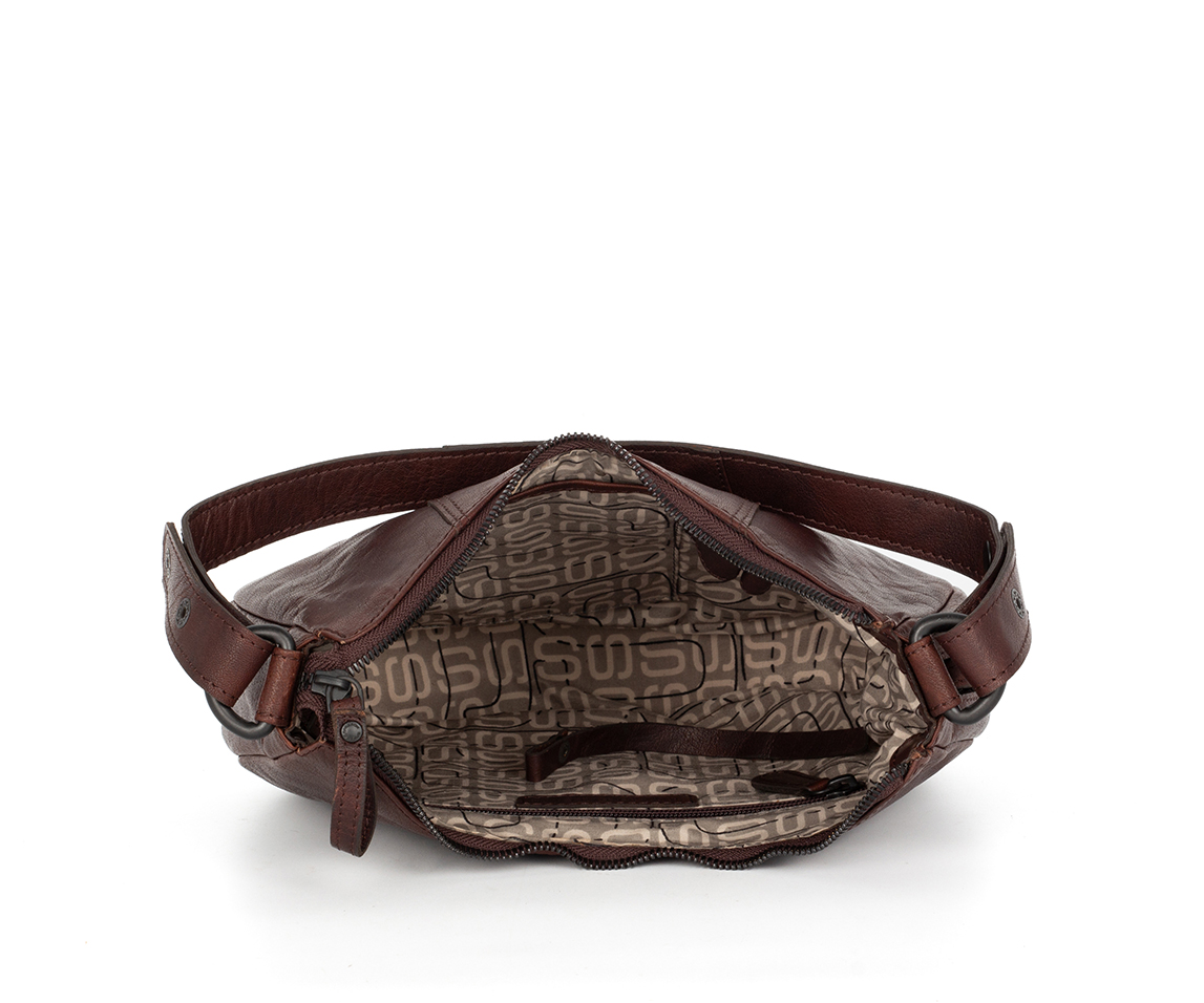 Riley je naše inovativní taška přes rameno s výrazným kulatým tvarem, který připomíná sedlovou brašnu. Má praktickou boční kapsu na zip a dvě přední boční kapsy, z nichž jedna má vsuvnou kapsu na telefon. Dodává se s odděleným dlouhým popruhem, který je odnímatelný, takže tuto tašku přes rameno snadno proměníte v crossbody.