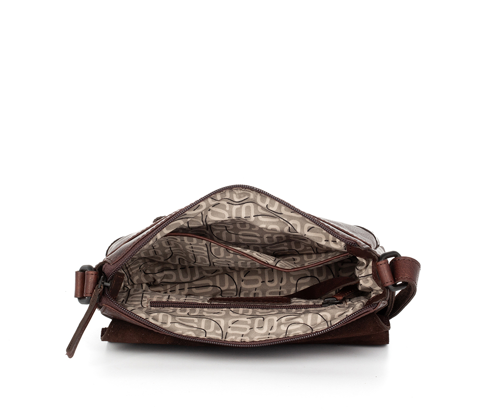 Tmavě hnědá kožená kabelka přes rameno značky SPIKES & SPARROW vyrobená ze 100% hovězí lícové kůže. Taška má kožený nastavitelný popruh a je uzaviratelná na zip. Vnitřní uzaviratelná kapsa je idealní pro uložení dokladů.