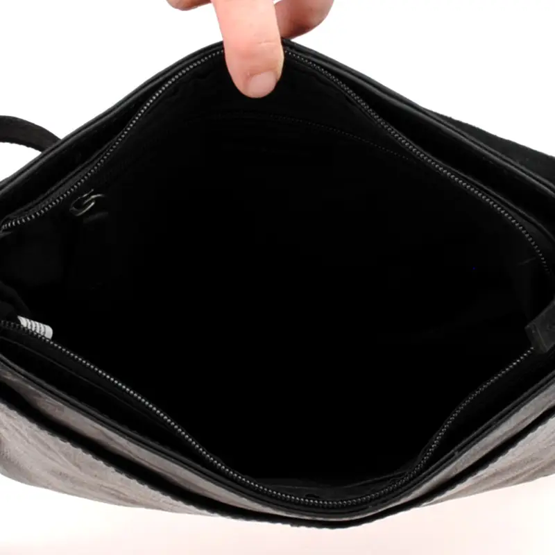 Tato praktická kožená taška značky naší výroby je vyrobena z prvotřídních materiálů. Je vhodná ke každodennímu použití. Hlavní přihrádka je uzavíratelná na zip. Uvnitř se skrývají poutka na pera a další přihrádka na zip. Toto crossbody je vybaveno nastavitelným textilním ramenním popruhem.