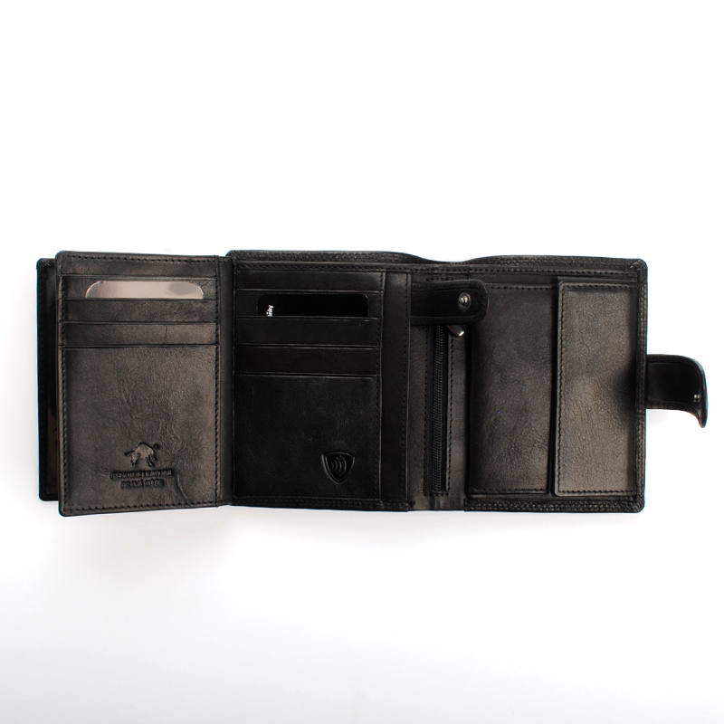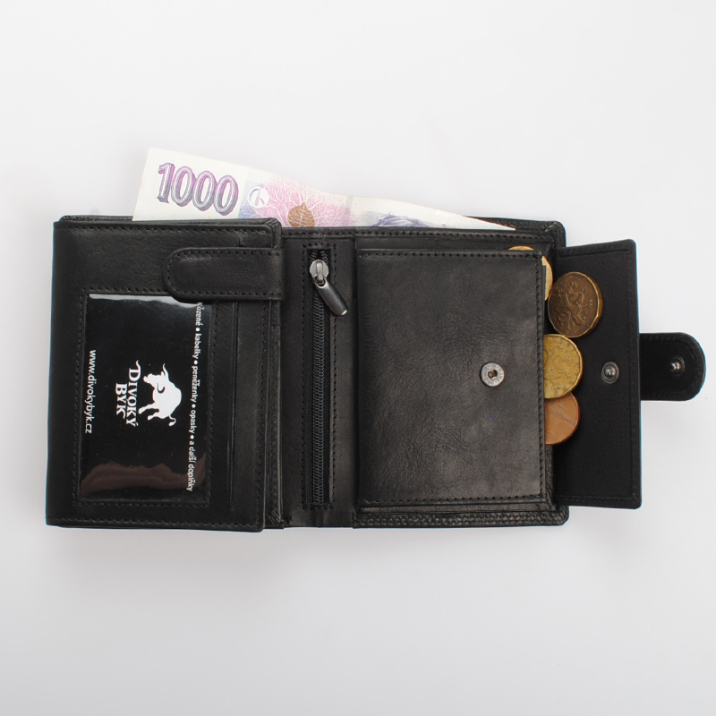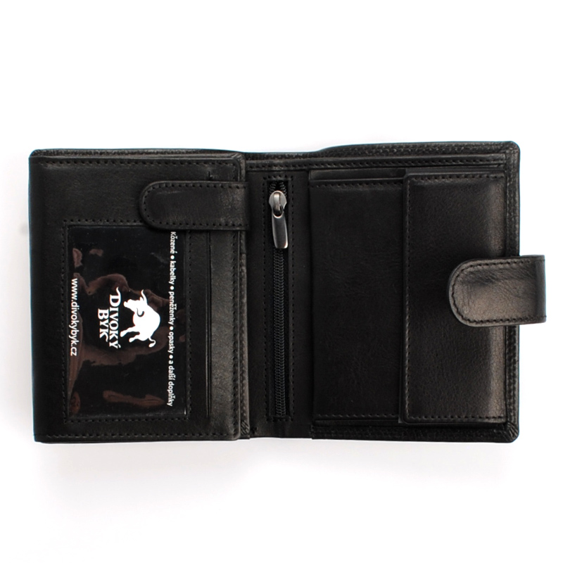 Velká černá pánská kožená peněženka se zápinkou DIVOKY BYK