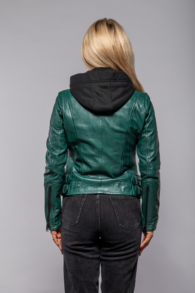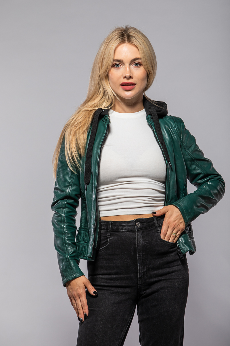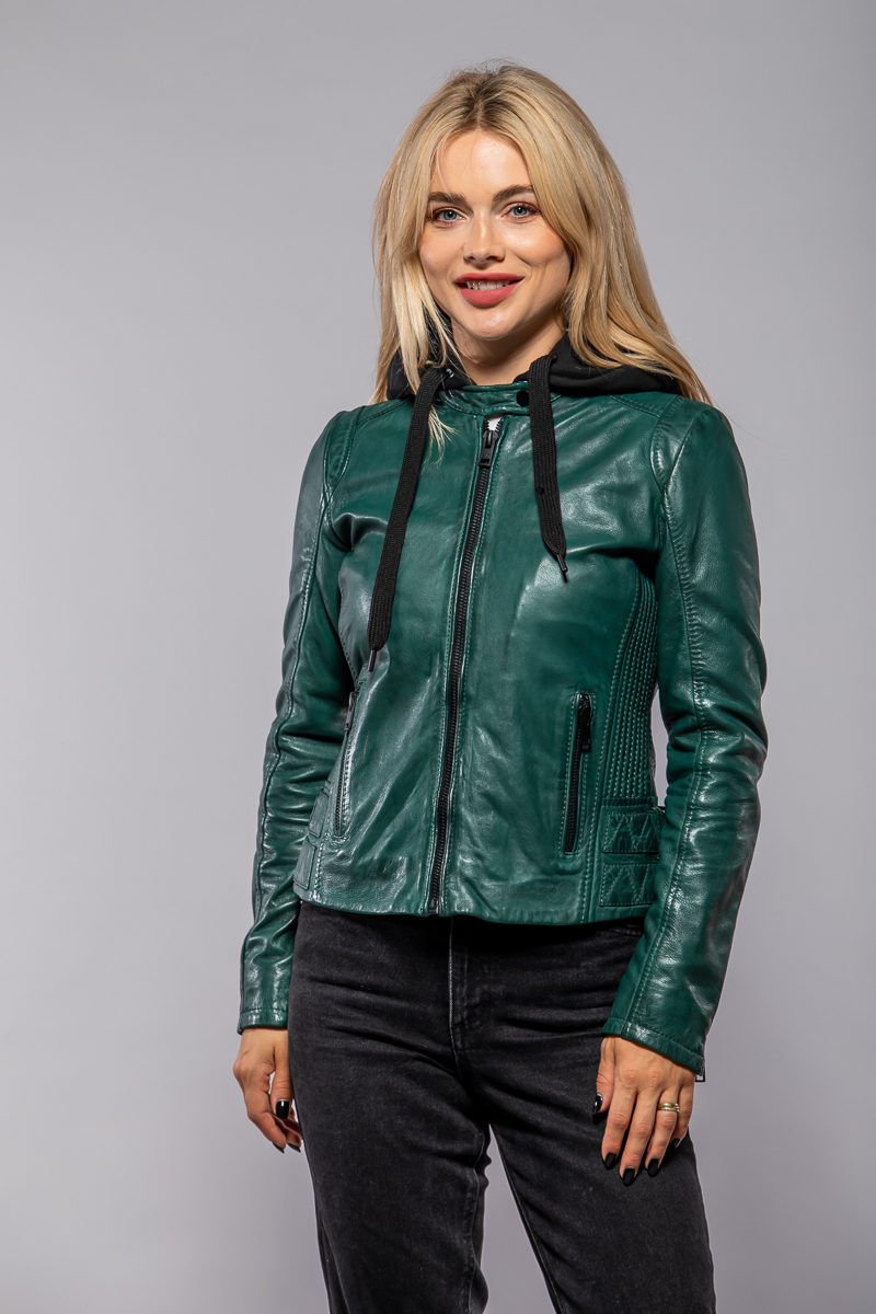Dámská kožená zelená bunda vyrobená ze 100% jehnětiny. Bunda má textilní odepínací kapuci. Moderní střih Regular velmi skvěle sedí. Vybíráte koženou bundu? U býka najdete kožené bundy předních evropských výrobců Gipsy a Derrcraft. Obrovský výběr modelů i barev, bundy máme i v nadměrných velikostech. Navštivte nás v některé z našich prodejen, které máme v Praze, Plzni a v Ostravě. Všechny kožené bundy máme skladem!